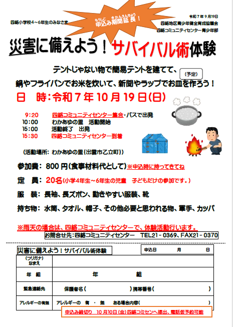 ・青少協デイキャンプ・サバイバル術(わかあゆの里) |