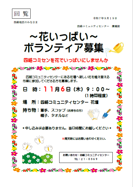 ・11月6日(木):四絡コミュニティセンター花壇の植え替え