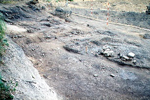 ![]() 円形のくぼみ(写真右)を中心とするマツリの跡 |
