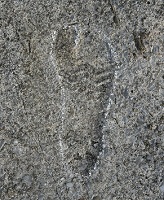 旧大社基地滑走路に残る作業者の足あと」
