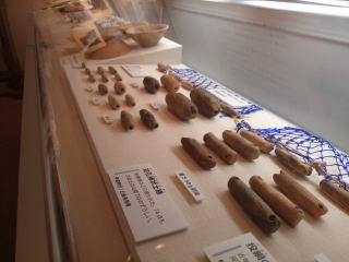 | 【展示概要】 出雲市西園町に所在する上長浜貝塚を紹介します。発掘調査の結果、縄文時代から平安時代にかけての遺跡とわかりました。奈良時代には、土器で塩作りが行われ、出雲各地に運ばれました。 平安時代には、全国最大級の規模をもつ貝塚が形成されました。この貝塚は、主にシジミが堆積しており、魚骨や獣骨もよく残っていました。そして、漁具もたくさん出土しています。 出土した生物の生息する場所や漁具から、上長浜貝塚を残した人たちの生業とその活動範囲を紹介します。 【主な展示品】 ・縄文土器 ・縄文石器 ・製塩土器 ・貝類 |