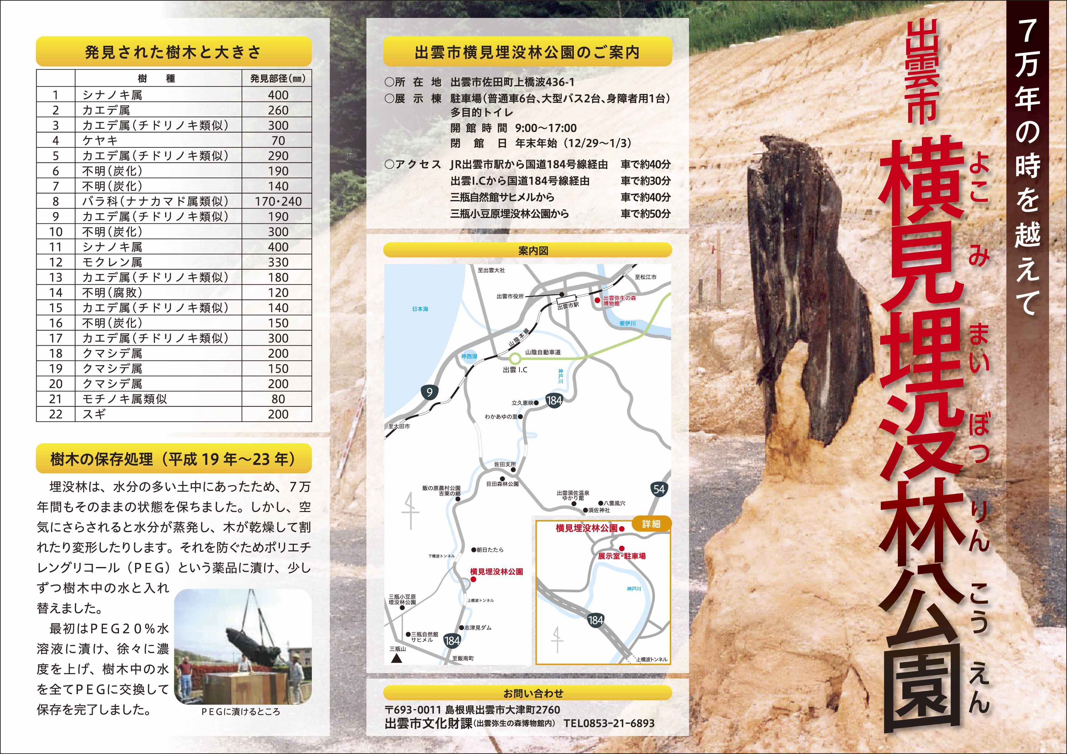- ◎出雲市横見埋没林公園(いずもしよこみまいぼつりんこうえん)出雲市佐田町上橋波