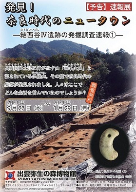 | 【展示概要】 新工業団地(斐川)発掘調査速報展の第1弾。 |