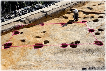 掘立柱建物跡 ![]() ヒスイ製の勾玉 |