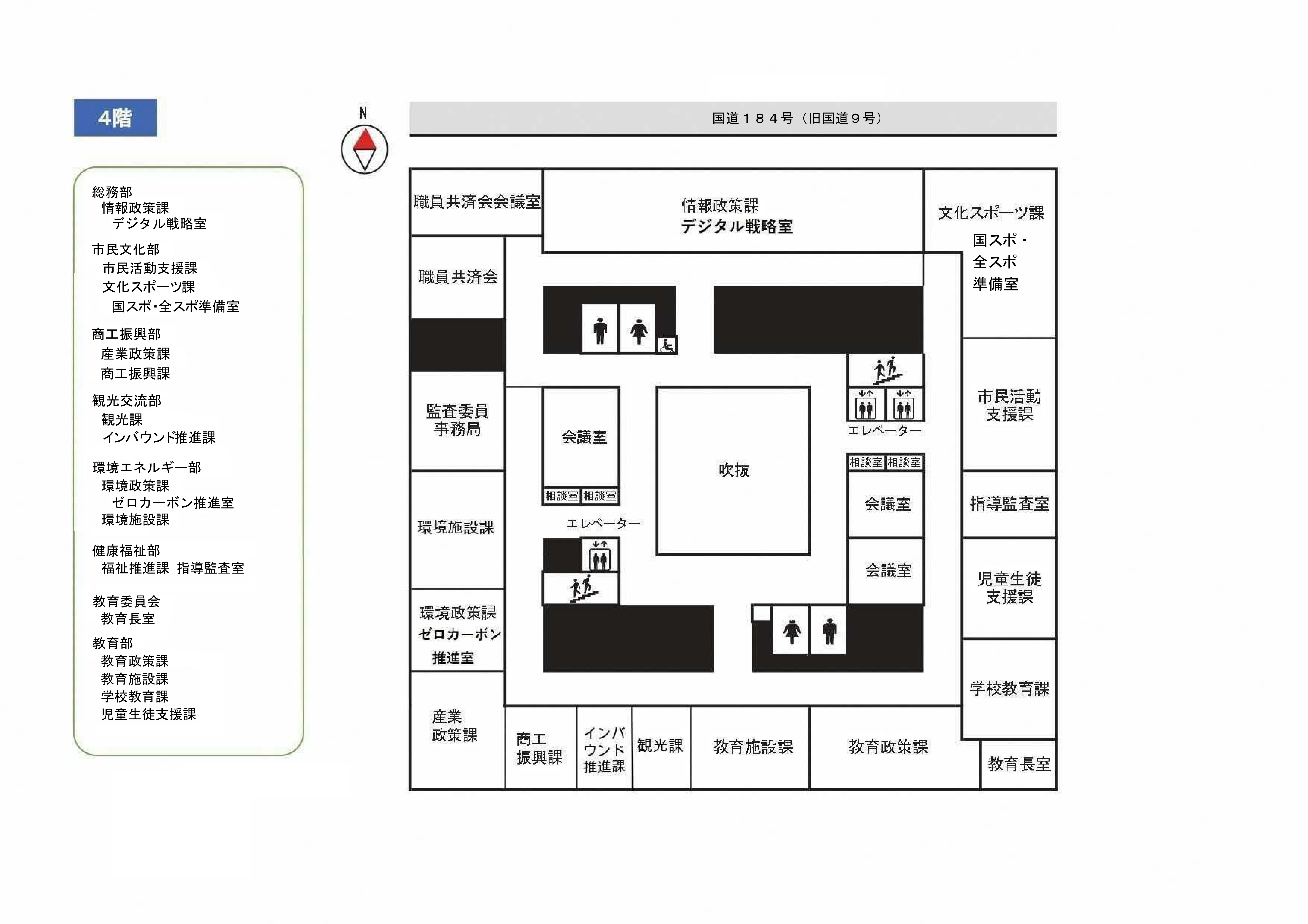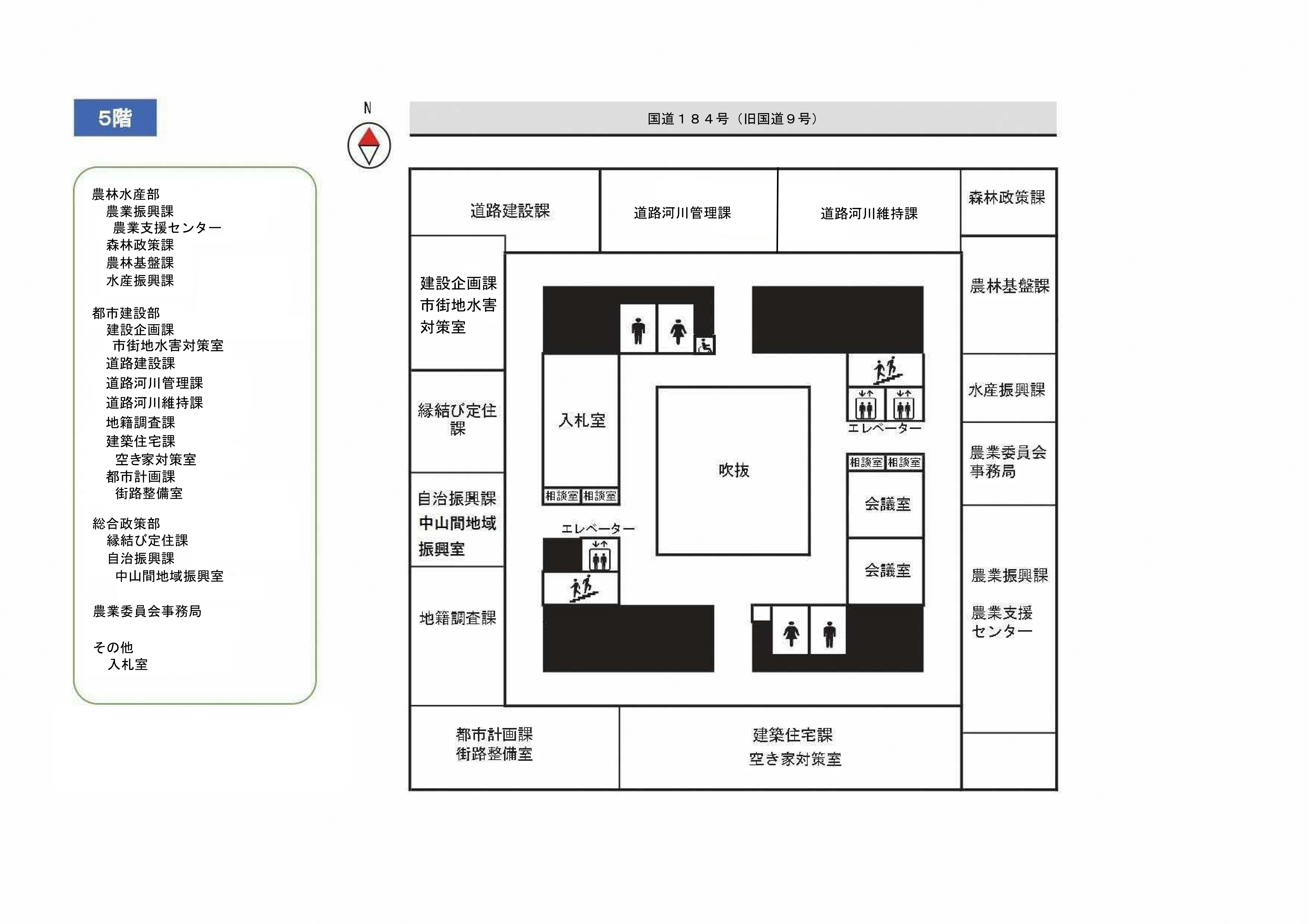 | 5階 | 【農林水産部】 | 農業振興課、農業支援センター、森林政策課、農林基盤課、水産振興課 |