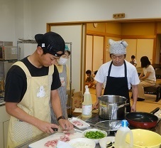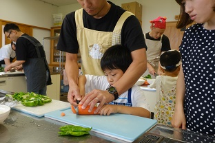 7月14日、日曜日、超初心者の男性の為の料理教室を開催しました。「超初心者でも美味しく楽しく作ろう」をテーマに、若い方にも来ていただけるよう、主に日曜日に開催しています。今回は4組のご家族の参加があり、子どもさんも来てくださってとても賑やかでした。