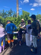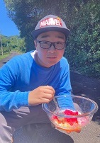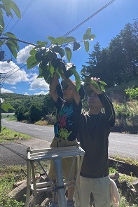 7月21日、日曜日、水浦さんの柿農園で摘果作業を教わりました。5月の摘蕾作業の時と比べて実が大きく育っていて嬉しくなりました。摘果作業は、柿の実を一つ一つ目視で確認する必要があり、大変な時間がかかります。水浦さんに教えていただきながら、実の付き方やカメムシ被害を見ながら切り落としました。切り落とした青い小さい柿は試食してみました。ほのかな甘味でリンゴの様な味のものもあれば、渋すぎて食べられないものもあり、渋い顔をする姿を見て皆で盛り上がりました。最後にかき氷やスイカ、マシュマロとウインナーを焼いて食べて楽しみました。