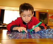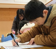 作った凧に絵を描き、オリジナリティ溢れる素敵な凧ができました。