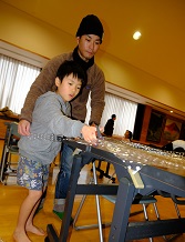 1月24日(土)コミセンで凧を手作りし、斐伊川土手で飛ばしました。