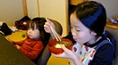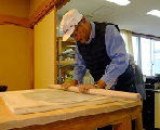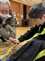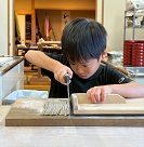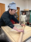 12月13日(土)、昨年度に引き続いて、美談の佐藤さんを講師に招き、そば打ち体験!各工程でアドバイスをもらいながら、子ども達も一緒に頑張りました。水を均等に行き渡らせることがもっとも重要とのこと。昨年度経験者ばかりだったこともあり、手際よく作業が進みました。そして、難しいそば切りにも挑戦。今回は佐藤さんが持って来てくださった便利アイテムも使用しました。とても簡単に太さの揃った蕎麦が出来上がり、機械の偉大さに感動した私達でした。太さが揃っていなくても自分たちで打った味は格別。「お店のよりも断然おいしい」と自画自賛しながらいただきました。子ども達も何枚もおかわりするほどの美味しさでした。年末にもチャレンジするというご家族もおられ、結果報告が楽しみです。
