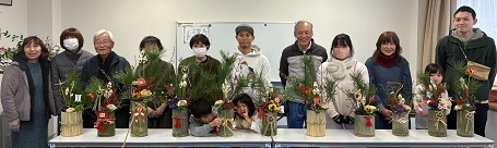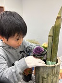 12月27日(土)、金山地区の桑原文子さん、槇野寿衣さんを講師に招き、お正月にぴったりの「ミニ門松」を作りました。材料は同じでも、配置や飾りつけに個性がキラリ!それぞれに素敵な門松が完成しました。できあがったものを見て褒め合って、和やかな雰囲気の中終了しました。自分で作った門松を飾って、良い年末年始を過ごせたかな?この門松は、きちんとお世話をしたら2か月以上楽しめるそうなので、ぜひ大切に長く楽しんでいただけたらと思います。![]() |