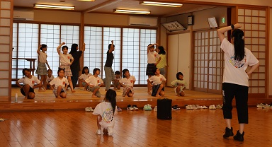 8月3日(日)、プラッツ祭りに向けた最後のレッスン日でした。お祭り会場であるプラッツ館で久々に全員揃っての練習。おそろいTシャツも届き、ますます一致団結し、立ち位置や細かい部分の確認をしました。途中からスポ少の皆さんも合流し、合同で練習をしました。
