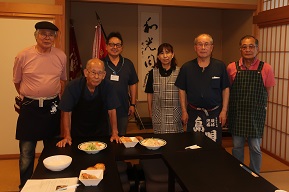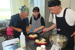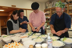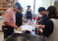 8月26日(火)、そうめんを使ったメニュー3品を作りました。鶏だし冷製そうめん・ひとくちそうめんチーズチヂミ・そうめんドーナツ。参加者の皆さんは「そうめんにこんなアレンジがあるんだ!」と新たな発見になったようでした。どれも美味しくお腹いっぱいになりました。