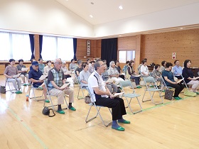 7月15日(火)、音楽療法士であり一般社団法人リージョナルミュージック代表の金築朋子氏を講師としてお招きし、生演奏に合わせて「浜辺の歌」や「海」など、季節を感じる美しいメロディーを歌うプログラムを実施しました。参加者は音楽の持つ力に触れ、昔懐かしい童謡や唱歌が記憶や感情を呼び起こすきっかけになり、心身ともに穏やかなひとときを過ごしました。「久々に声を出したわ!」と喜んでいただけて、嬉しかったです。