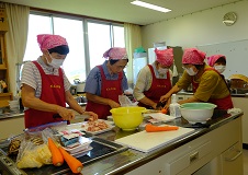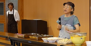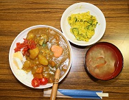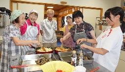 学習タイムあとはランチ。この日の担当は、男の料理教室の皆さんです。毎月コミセンで活動しているだけあって、手際よく美味しいカレーライスを作ってくれました。