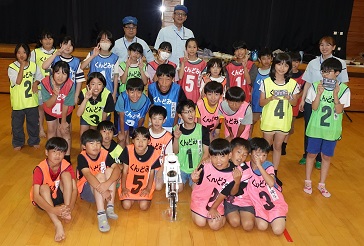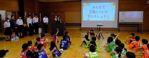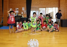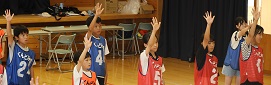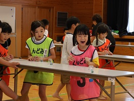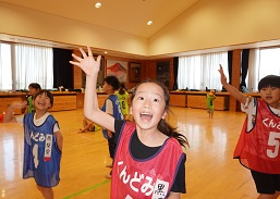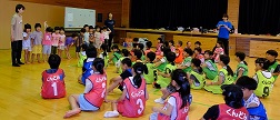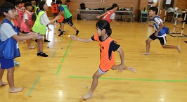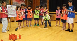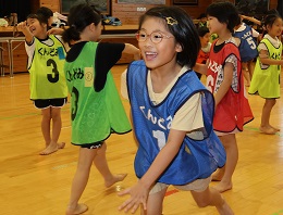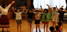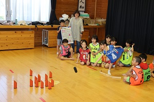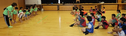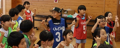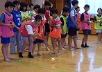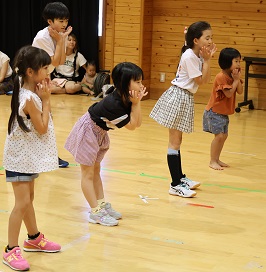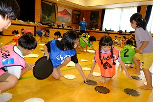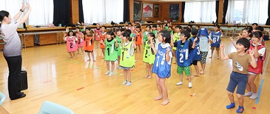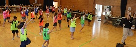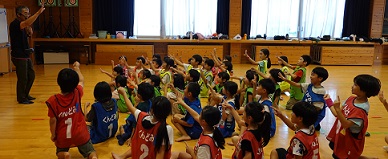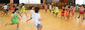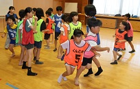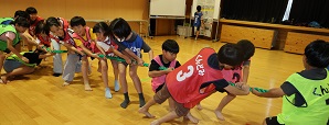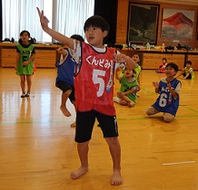 学習タイムの後、レクリエーション協会の木村真介さんとじゃんけんゲームなど、元気いっぱい身体を動かしました。