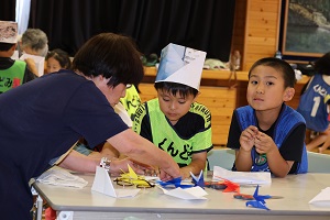 そして、最後は折り紙教室。中学生ボランティアさんにも手伝ってもらって、いくつかの作品を作りました。最後まで諦めずに取り組む姿勢は素晴らしい。