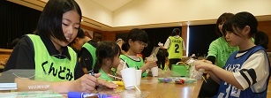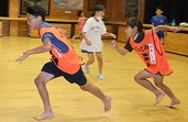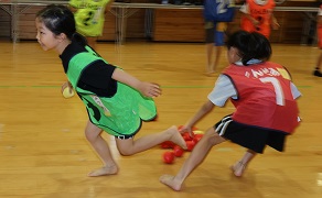 この日は山根千恵美さんと身体を動かす活動から。ジャンケンやボールを使ったゲームで競い合いました。すごいスピードで動くので、写真を撮るのも難しい!
