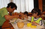 最後は恒例の絵手紙教室。一人ひとりが大切な人へ心を込めて描きました。消しゴムハンコも頑張りましたね!