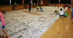 午後からは新聞ドーム作り!経験者もたくさんいて、手際よく頑張ってくれました。壊す瞬間もやっぱり大盛り上がり。最後まで楽しい活動でした。