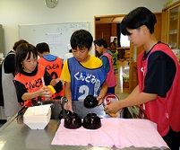7月19日(土)、柿シリーズ第3回目は摘果作業でした。今年は強風や急激な温度変化などの気象状況の影響で柿の実の付きが少ないとのこと。そのため、摘果作業はそこそこに、実の数を数える作業をしました。その後、別の園も見学させていただき、そこで育てられている柿の種類についても説明を受けました。最後はみんなでかき氷を食べて楽しい時間を過ごしました。![]() |