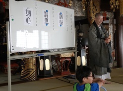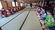 その後は慈円寺の和尚さんによる坐禅会。少しでも休み時間があると騒ぎ出す元気いっぱいの子どもたちですが、坐禅の時間は静かに座っていましたよ。