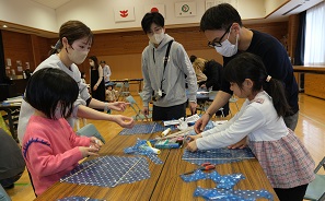 1月26日(日)に、凧あげ大会を開催しました。子ども21名、総勢44名で賑やかに行われました。ビニールを切って竹ひごを貼り付ける、お手軽版の凧を、子どもたち一人一人がが手作りします。小さい子も保護者やスタッフに手伝ってもらいながら頑張りました。そして、できあがった凧を持って斐伊川土手へ!曇り空で風のない日でしたが、一生懸命走って飛ばしました。子どもたちは飛んだ凧を見てキラキラの笑顔を見せてくれました。