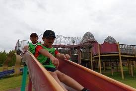 8月20日、火曜日、今年もサマースクール参加者を対象に、67名の子ども達と20名のスタッフで、備北丘陵公園へ出かけました!過去最大の参加人数で、バス2台が満席!それはそれは賑やかな車内でした。心配していた天気にも恵まれ、雨は降らず、おだやかな曇り空の中での開催となりました。とはいえ湿度は高く、子どもも大人も汗でびっしょりになりながら走り回りました。グループごとに、午前中はアスレチックで遊び、午後は大型遊具やびっくりシャワーでずぶ濡れになって楽しみました。大きな事故もなく無事に終えることができよかったです。ご協力いただいたスタッフの皆様、お忙しい中、暑い中、本当にありがとうございました!