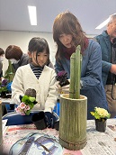 12月27日(土)、金山地区の桑原文子さん、槇野寿衣さんを講師に招き、お正月にぴったりの「ミニ門松」を作りました。材料は同じでも、配置や飾りつけに個性がキラリ!それぞれに素敵な門松が完成しました。できあがったものを見て褒め合って、和やかな雰囲気の中終了しました。自分で作った門松を飾って、良い年末年始を過ごせたかな?この門松は、きちんとお世話をしたら2か月以上楽しめるそうなので、ぜひ大切に長く楽しんでいただけたらと思います。![]() |