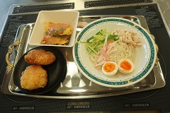 8月26日(火)、そうめんを使ったメニュー3品を作りました。鶏だし冷製そうめん・ひとくちそうめんチーズチヂミ・そうめんドーナツ。参加者の皆さんは「そうめんにこんなアレンジがあるんだ!」と新たな発見になったようでした。どれも美味しくお腹いっぱいになりました。