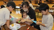 次に、村田製作所さんとオルゴール作りをしました。さすがは高学年、お友達と教えあいながら上手に作っていました。