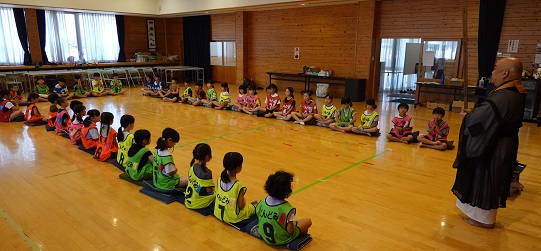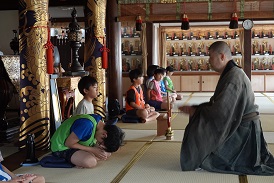 その後は慈円寺の和尚さんによる坐禅会。少しでも休み時間があると騒ぎ出す元気いっぱいの子どもたちですが、坐禅の時間は静かに座っていましたよ。