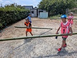 しっかりお勉強した後、歩いて康国寺へ行って坐禅体験。素敵な庭園も見せていただき、心身ともにリフレッシュしました。帰り道には、明日のそうめん流しで使う竹を運んでもらいました。頼りになる子どもたちでした。