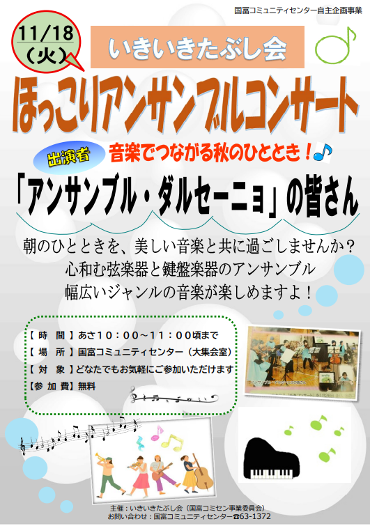 11月はコンサートです♪音楽で心豊かなひとときを!