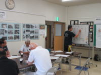 9月7日(日)、水害被害を想定した一斉避難訓練を行いました。午前8時に地区災害対策本部を設置し、避難指示を出すことを決定。自治会ごとに連絡網を回し、指定された場所に避難しました。本地区は4年前の大雨で大きな被害を受けたこともあり、積極的に参加していただくことができました。