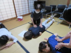 9月11日(木)、自主企画事業(スポーツ部)のヨガ教室が行われました。この日のテーマは「リンパマッサージ」。地元講師さんのご指導のもと、参加者14名は2人1組で楽しくマッサージをし合いました。血流が良くなり、みんな心なしか元気になったようです。