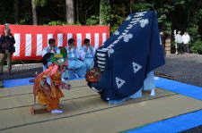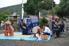 10月19日(日)に河下例大祭が行われ、河下獅子舞が奉納されました。当家で舞った後、垂水神社・意保美神社の2社で奉納されました。今年も新しく保存会に加わった人もおり、練習の成果を発揮して、すばらしい舞を披露しました。