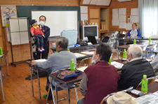 11月26日(水)、唐川町の唐川館と河下町のみなと館で、寿朗会の交通安全教室が開かれました。十六島駐在所の方の腹話術や交通安全アドバイザーの方による高齢者講習の模擬テストなどにより、楽しく具体的に学ぶことができました。
