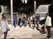 12月6日(土)、鰐淵歴史探訪ウオーキングを行い、27人が参加しました。今年は趣向を変え、クイズラリー形式で実施しました。グループを作って河下町内の神社・仏閣、遺跡、港や海水浴場、学校など7カ所を巡り歩き、クイズを解いたり指示されたミッションに取り組んだりと、楽しみながら地域の歴史を学ぶことができました。