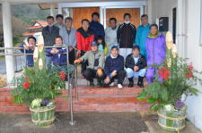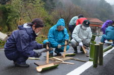 12月21日(日)、コミセン自主企画事業として、ふるさとづくり部が河下地区親交会の協力を得て、恒例の門松作りを行いました。雨の中、竹や松などの飾り物を切り出し、みんなで協力して見事な門松がコミセン玄関に完成。作業後はおいしいカレーに舌鼓。皆さん、ありがとうございました。