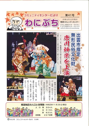 ●文化部・鰐淵文化講演会(2月20日) ・「鰐淵ふれあいまつり」開催 (11月9日) |