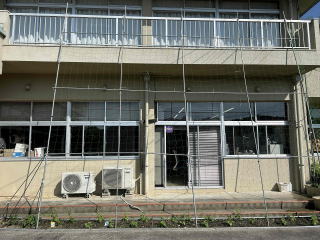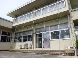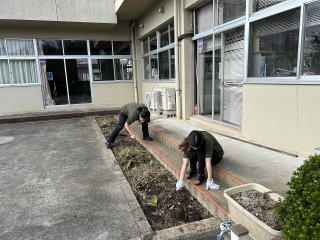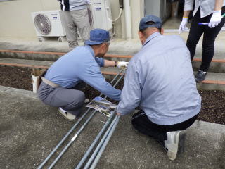 地域のボランティアさん4名に、ゴーヤの棚を設置していただきました。