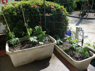 苗を植えて1週間。つるを伸ばして頑張っています。