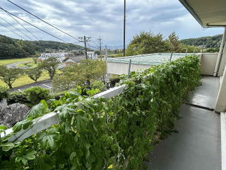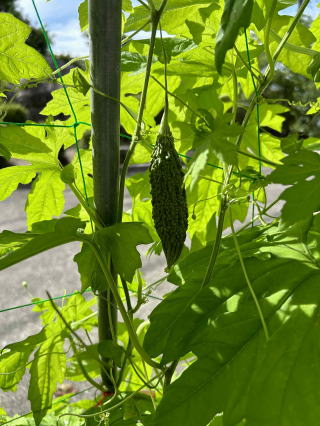 2階までツルが伸びて、ゴーヤもたくさん収穫できています