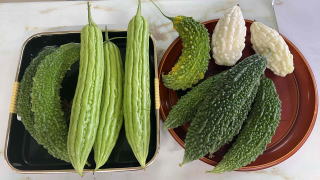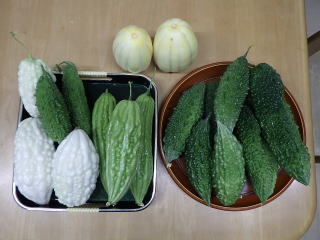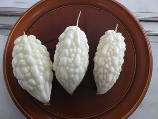 真っ白でとてもきれいな白ゴーヤ☆ 今朝は3つ収穫しました。