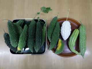 2日間での収穫です。オレンジになったゴーヤは甘くて美味しいですよ♡