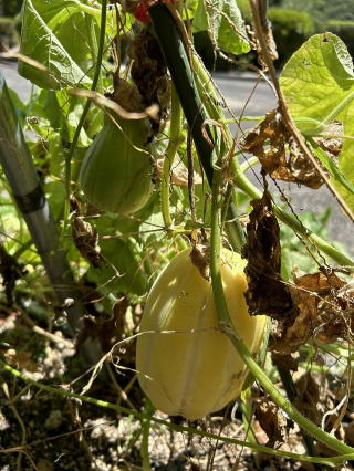 楽しみにしていたメロンの収穫です。 ゴーヤカーテンのおかげで毎日涼しく