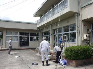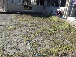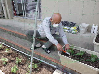 地域のボランティアさん4名に、ゴーヤの棚を設置していただきました。