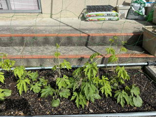 苗を植えて1週間。つるを伸ばして頑張っています。