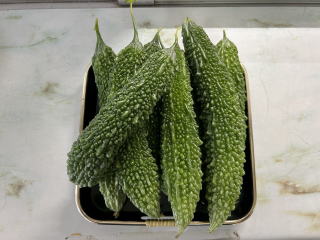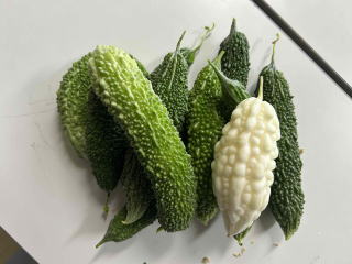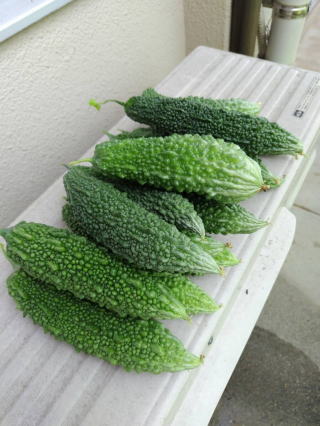 濃いみどり色で、実もゴツゴツしていてとても立派なゴーヤです!!
